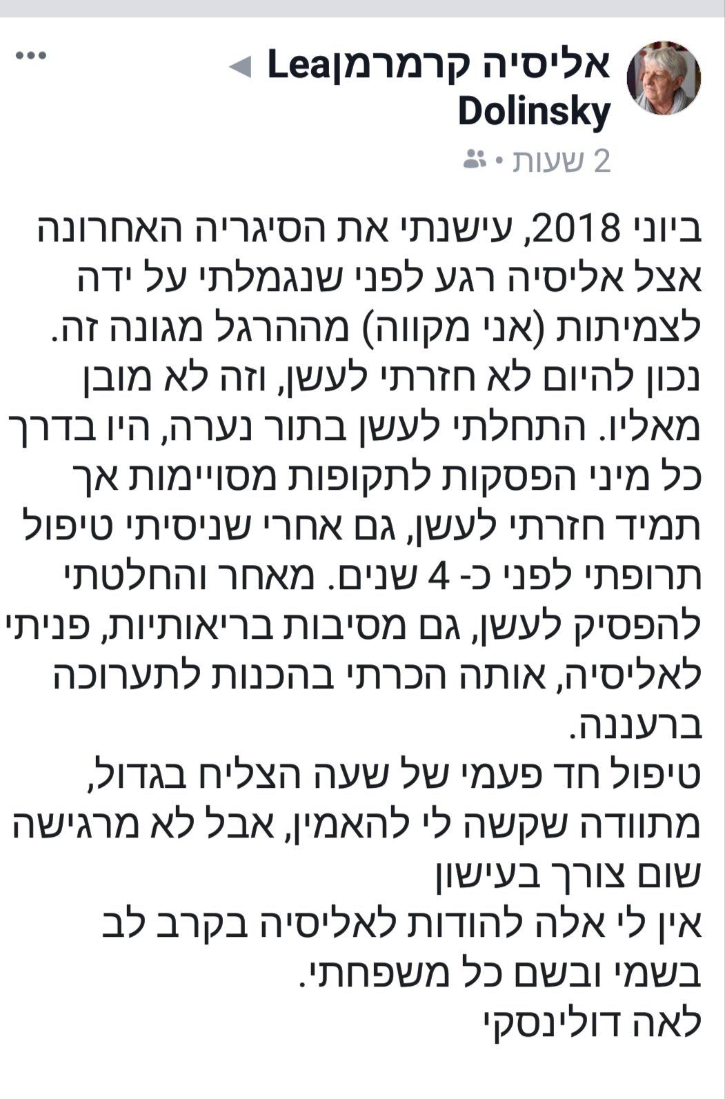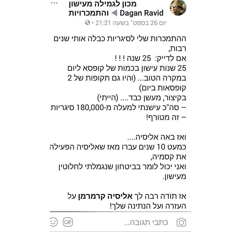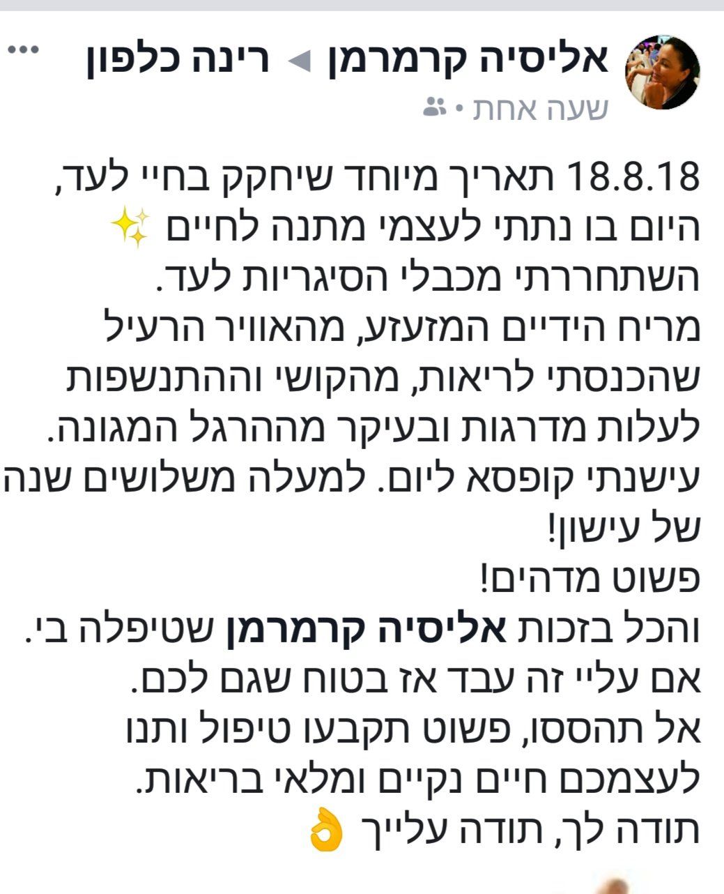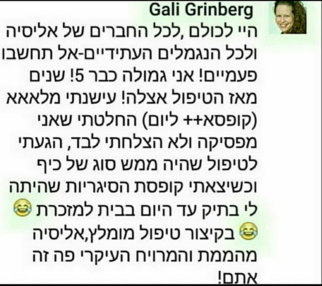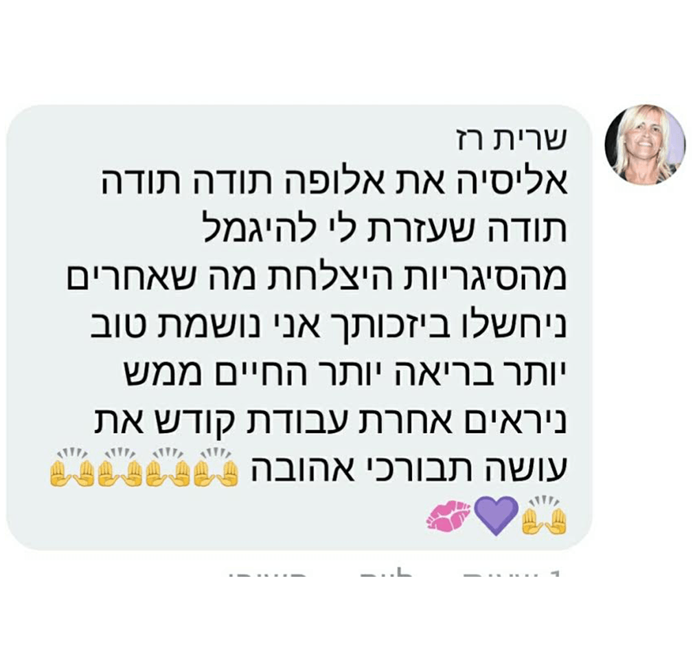 אם הגעתם לשלב שאתם מבינים שההתמכרות לא משרתת את טובתכם ויש בכם רצון להשתחרר ולחיות חיים בריאים יותר, שמחים יותר, מסופקים יותר ומשוחררים מתלות אני מבטיחה שאעזור לכם להגיע לשם!